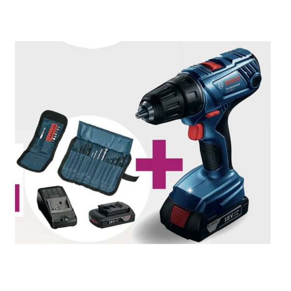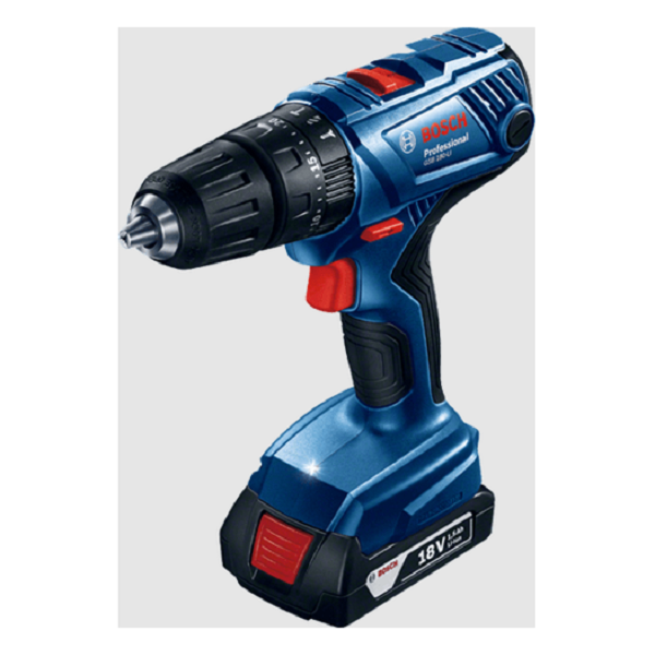 13mm 18V Cordless Impact Drill/Driver with carrying case, two 2Ah Li-ion battery and charger- Bosch GSB 180-LI: This device offers Bosch Quality at affordable price and is designed with robust housing and battery cell protection. The motor has changeable carbon brushes for easy maintenance and serviceability.