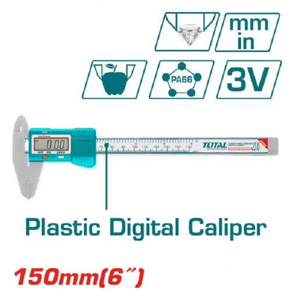 150mm (6inch) Plastic Digital Caliper with Easy Switch from Inch to Metric – TOTAL TMT331501