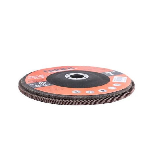 180mm Flap Disc – 7inch, Grit 80# – Finder 195634: Attach this disc to your angle grinders ‘s arbor. Overlapping abrasive flaps bonded to a backing plate provide consistent material removal and even finishes. As the top layer of abrasive wears away, a new layer is exposed.