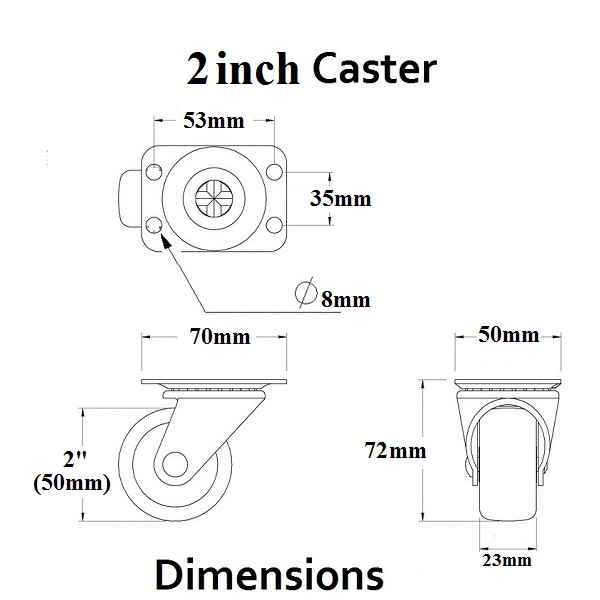 | Features: | Polyurethane Tread on polypropylene core Swivel Plate Stamped-steel frame Locking-Brake Unsealed Ball bearings |