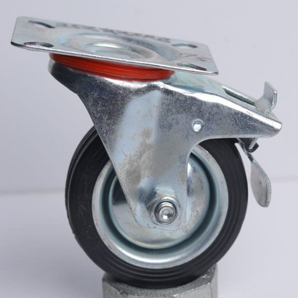 3inch Black Caster with Rubber Wheel, Swivel Plate and Locking Brake