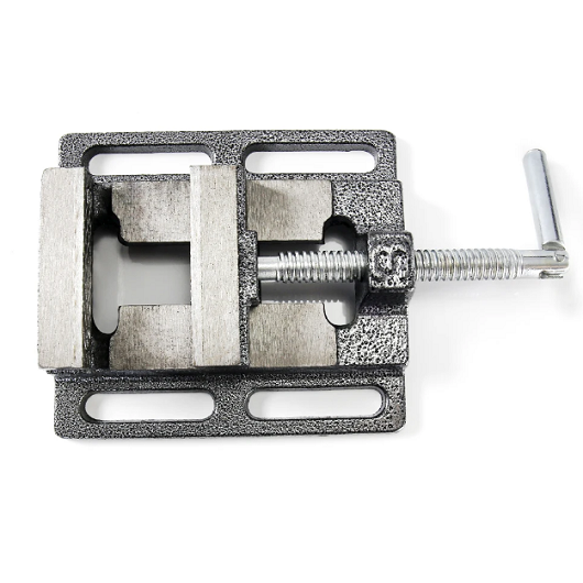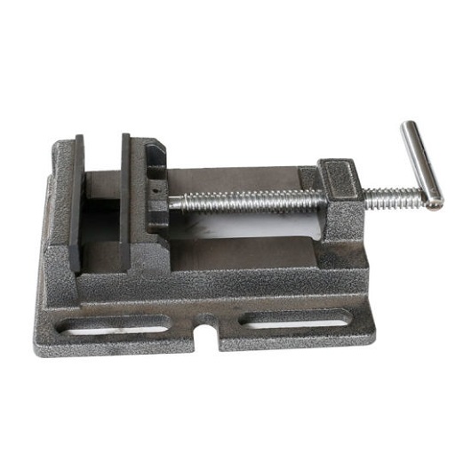 Turn the handle to move the jaw on these basic vises. They mount directly to your drill press for drilling, tapping, and reaming applications. Vises have one smooth jaw and one grooved jaw for clamping flat, round, and uneven workpieces. The open base allows you to drill through your workpiece without hitting the bottom of the vise.
