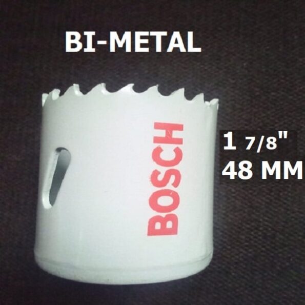 48mm Holesaw for Standard Adapters – Bosch 2608580418 HSS BI-METAL Hole saw – 2 608 580 418: These standard saws have high-speed steel teeth to make circular cuts in wood, plastic, and metal. Attach them to a drill or drill press. An arbor with pilot drill (sold separately) is required.