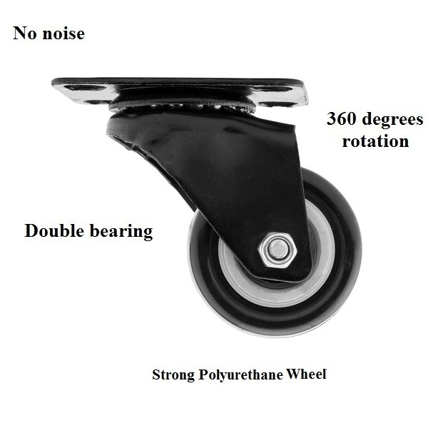 5inch Black Swivel Caster with Polyurethane Wheel and without Lock (Set of 4Pieces)