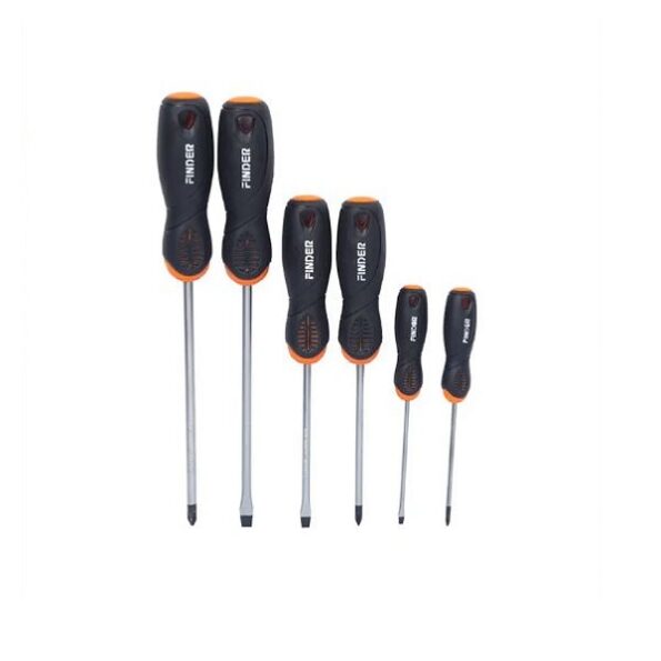 6PCS Screwdriver Set – SL3x75mm, SL5x100mm, SL6x150mm, PH0x75mm, PH1x100mm, PH2x150mm – Finder 193031