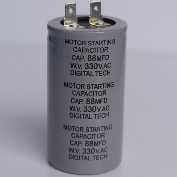 88µF Motor Starting Capacitor, 330VAC: These capacitors provide a burst of energy to start motor rotation in small, single-phase AC motors such as those used to power fans and pumps. They are designed for intermittent AC duty and are used in starting fractional horsepower, single-phase electric motors, as well as in gear motor applications. The capacitors are housed in rugged plastic cases, which require no added insulation hence rendering them moisture- and oil-resistant.