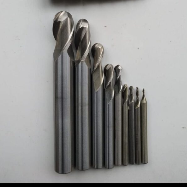 8mm High-Speed Steel Ball Nose End Mill: Use these end mills for general purpose milling in most material, such as aluminum, brass, bronze, iron, and steel. They have a ball end for milling rounded slots, slopes, and contours. All are center cutting, allowing plunge cuts into a surface.