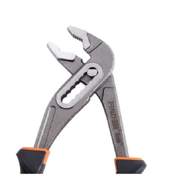 9½ inch Groove Joint Plier – Finder 190466: With a slim head and long, narrow jaws it can easily fit into tight spaces. These pliers have combination jaws with a flat area for general purpose gripping and a curved area for round material. The PVC Cushioned handle offers a much more comfortable grip.