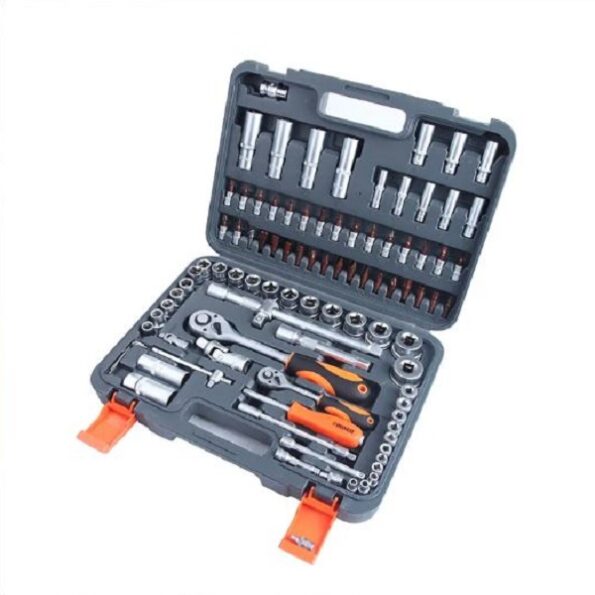 1PC x ¼” Extension Bar: 2″ 1PC x ¼” Universal Joint 1PC x ¼” Coupler 1PC x ¼” Spinner Handle 4PCS x ¼” Deep Socket: 8, 10, 12, 13mm 11PCS x ¼” Socket: 4, 5, 5.5, 6, 7, 8, 9, 10, 11, 12, 13mm1PC x 3/8″ Ratchet Wrench: 45 Teeth 2PCS x 3/8″ Extension Bar: 3″, 6″ 1PC x 3/8″ Universal Joint 1PC x 3/8″(f)xx ¼”(m) Adaptor 1PC x 3/8″(f)xx ½”(m) Adaptor 2PCS x 3/8″ Spark Plug Socket: 16, 21mm 4PCS x 3/8″ Deep Socket: 13, 14, 15, 17mm 6PCS x 3/8″ E Socket: E8, E10, E11, E14, E16, E20 11PCS x 3/8″ Socket: 8, 9, 10, 12, 13, 14, 15, 16, 17, 18, 19mm 16PCS x 3/8″ Socket Bits: SL5.5, SL6.5, PH1, PH3, T20, T30, T40, T45, T50, T55, PZ1, PZ3, H4, H5, H6, H81PC x ½” Ratchet Wrench: 45 Teeth 2PCS x ½” Extension Bar: 5″, 10″ 1PC x ½” Universal Joint 1PC x ½” H17 Socket 1PC x ½” M16 Socket 1PC x ½” Socket Bit: T52*100L 7PCS x ½” Socket: 19, 21, 22, 24, 27, 30, 32mm1PC x Strut Nut Socket 1PC x Three Jaw Filter Wrench 1PC x Voltage Tester: 12-24v 2PCS x Screwdriver: SL6*100mm, PH2*100mm 9PCS x Hex Key: 1.5, 2, 2.5, 3, 4, 5, 6, 8, 10mm 18PCS x Bits: SL4, SL5, SL6.5, PH1, PH3, H3, H4, H5, H6, T10, T15, T20, T25, T27, T30, T40, PZ1, PZ2 11PCS x Combination Spanner: 8, 9, 10, 11, 12, 13, 14, 16, 17, 18, 19mm 1PC x BMC Box |