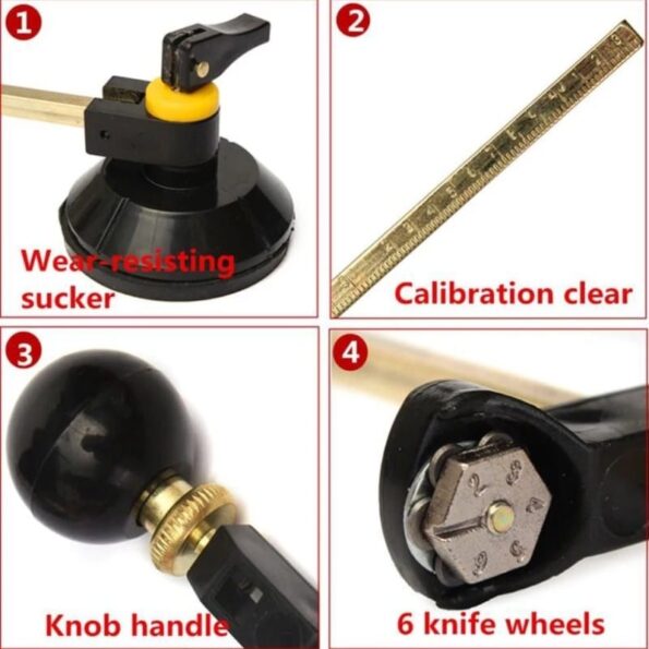 This high-quality tool is designed for clean, precise manual circular cutting. It is equipped with a precision-ground carbide cutting wheel. A powerful suction cup holds center while cutter head scribes the circle. The lever is made of polished metal, clear-cut scale which make easy to read. Ball handle on cutting head facilitates smoother, easier cutting movement.