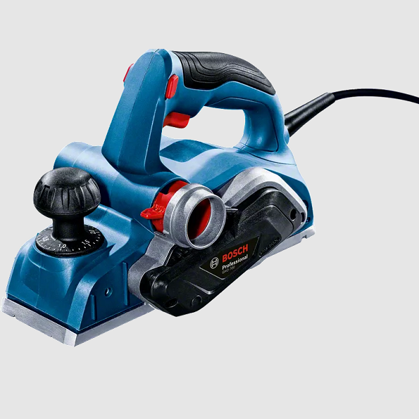 Electric Planer – 700W – Bosch GHO 700: This planer combines Bosch’s high-quality standards with an ergonomic design enabling controlled planing for a smooth surface finish in wood. Its compact design with optimized center of gravity helps prevent wrist strain for increased comfort during use. Optimized for both right- and left-handed operation, wood chips can be discarded from either side of the tool to minimize dust interference. With power of up to 700 W, this portable planer produces a great finish, even for very hard wood.
