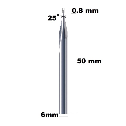 Huhao CNC Engraving Bit – 6mm Shank, 25 Degree, 0.8mm Tip, 50mm Cutting Depth