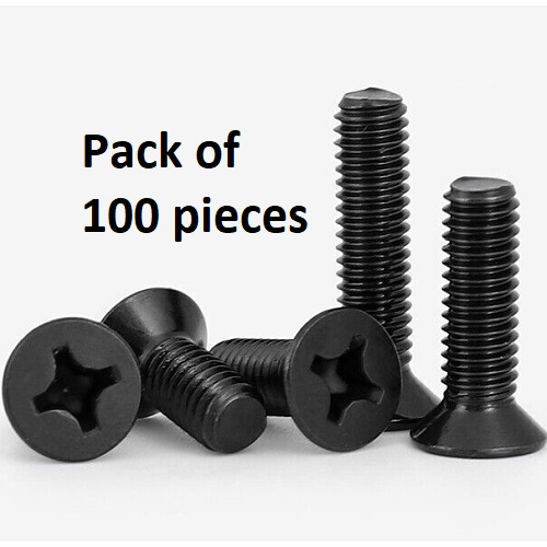 M8 Flat Head Countersunk Steel Machine Screws – Black, 30 mm Long, Phillips Drive, 100pcs