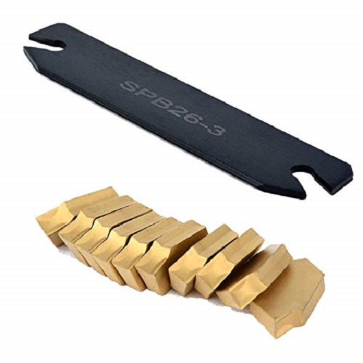 SPB26-3 Parting Blade: Also known as Cutoff blades, they are used to separate a finished part from the workpiece. They are used together with Cutoff Blade Holders. T15 high-speed steel blades have excellent wear resistance, making them good for cutting all metal and plastic. M2 high-speed steel blades have good wear and heat resistance for cutting steel, aluminum, and brass. M42 high-speed steel blades have excellent heat resistance, allowing them to cut hard metal such as stainless steel and nickel.