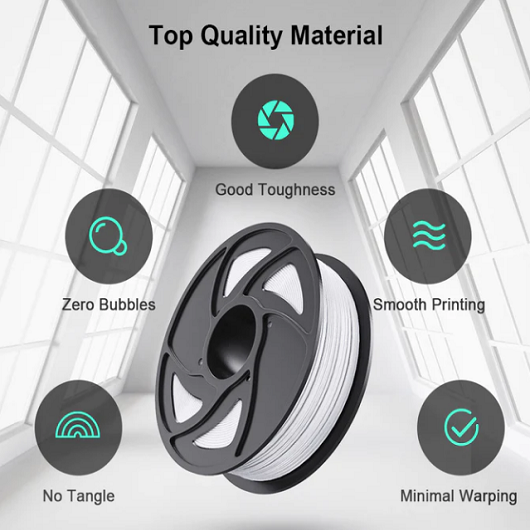 White PLA+ Filament Spool for 3D Printer; with its high strength and toughness, it is suitable for printing car models, industrial parts, and craft wedding gifts. Vacuum packaging makes it easy to store and prevent oxidation. It can work with most of FDM 3D printers in the market.
